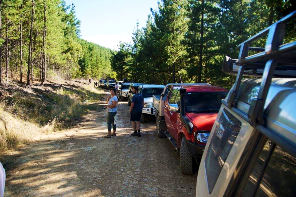 After visiting the summit, the three convoys joined up again to depart from Coree Camp and proceed North along Two Sticks Road to Blue Range Road and then via Genges Trail back onto Two Sticks Road. Genges trail was great for hill decent practice for with some fairly steep sections on offer. From Two Sticks Road we then navigated an un-named track that lead us back to Blue Range Hut for afternoon tea.