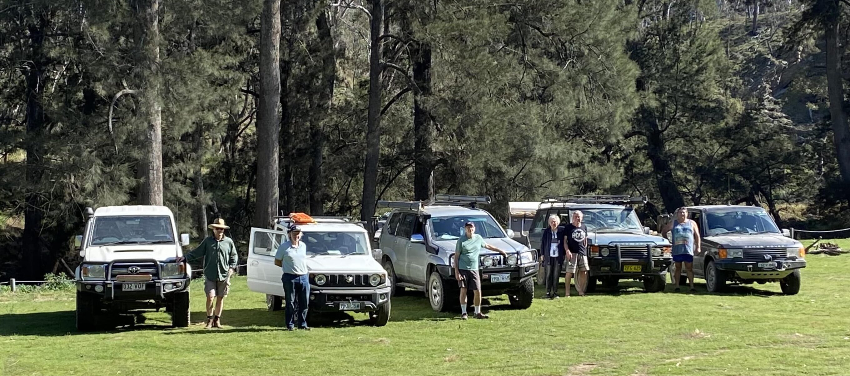 Beautiful weather for this long weekend and we had a gentlemen’s hours start of 9am at the Eagle Hawk point meeting point. All were excited for the opportunity to get away after a cold Canberra winter, so David B, David & Tim D, and Simon arrived early and headed up to North Goulburn Maccas to meet up with the Pembers and Ralph. After waiting for some to stock up on for coffee we headed up to Taralga for more coffee. Grand Ettie’s café at Taralga has table service and a fine selection, and after exhausting their vanilla slice stocks we headed 57 km up the Taralga – Oberon road to the Felled Timber Road turn off into Abercrombie National Park. The drive up was quite beautiful being surprisingly green amongst the rolling steep hills and farms. Bob with the diesel Rangie wanted to savour the view, therefore selected low-range for the steep ascent up the range.