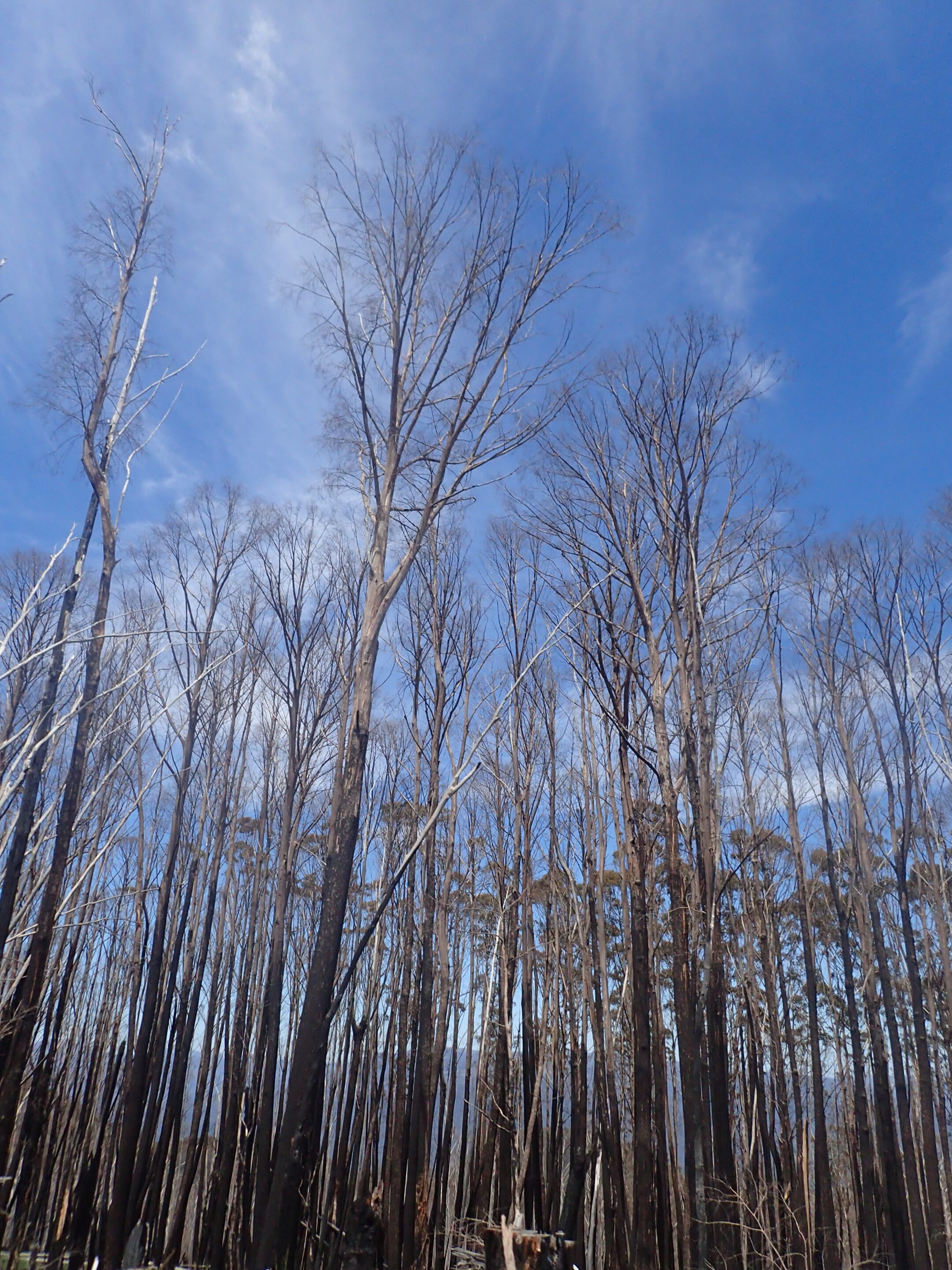 Back on the road we wound our way to Thredbo. Continuing up and then descending the range on the Alpine Way we came to our overnight camp at Geehi. The journey took us through fire damaged forest which is showing no sign of regeneration.