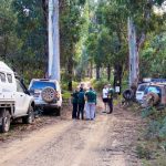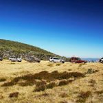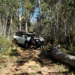 After lunch, we continued along Macfarlanes Flat track past the walking trail to Cowombat Flat and the source of the Murray. The ascent on the Coberras trail is often an interesting one and this trip didn’t disappoint. Paul easily made it to the top of the rocky section with no assistance, however the Mintons’ Navara, Totens’ Defender 130 and John Raineri’s Disco 2 needed a gentle tug over the steepest part. These were the only recoveries necessary as the Disco 4s walked up the rocks with no issue.