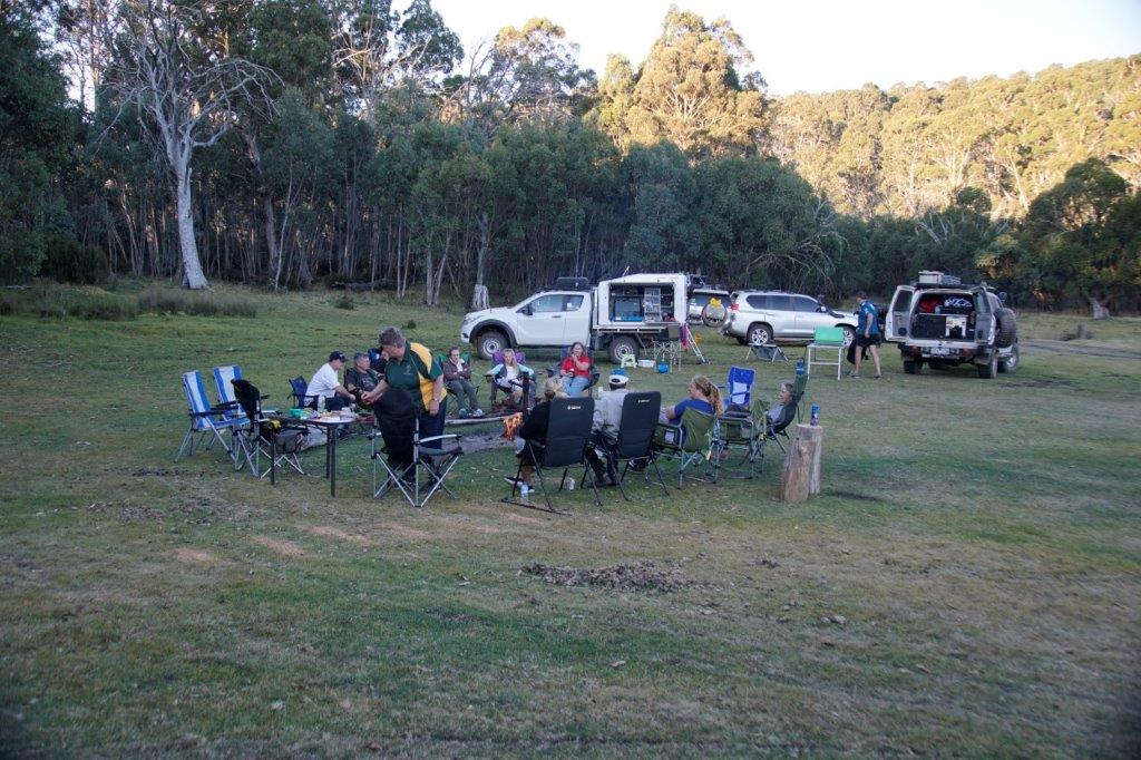 No sign of Paul’s group by 5pm, so we started drinks and nibbles without them, lit the fire and waited. They arrived at about 6pm after a very long and eventful day (see other trip report) to make up the final group of 11 cars and 21 people. We had a lovely night around the fire after everyone was set up, and heard all about the adventures of both groups. We retired around 10pm to a chilly night.