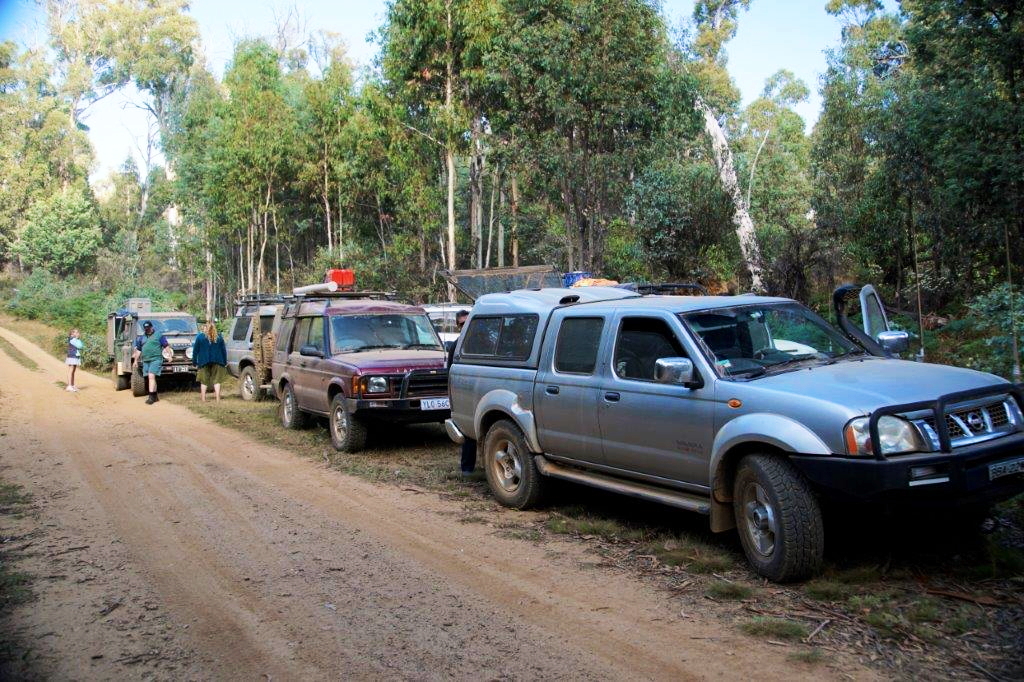 After lunch, we continued along Macfarlanes Flat track past the walking trail to Cowombat Flat and the source of the Murray. The ascent on the Coberras trail is often an interesting one and this trip didn’t disappoint. Paul easily made it to the top of the rocky section with no assistance, however the Mintons’ Navara, Totens’ Defender 130 and John Raineri’s Disco 2 needed a gentle tug over the steepest part. These were the only recoveries necessary as the Disco 4s walked up the rocks with no issue.