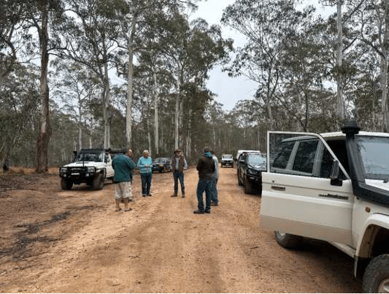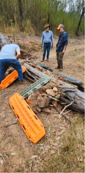 As we travelled up to Merricumbene we passed over several more trees. They were only a minor inconvenience. So much so that Simon stopped announcing them. But then we came to a very steep hill with some serious ruts. Simon took a couple of goes to determine the best line which he passed on to the convoy. He suggested that lockers might be useful. What are these “lockers” you speak of? Everyone successfully achieved the climb, but the Jimny was close to the limit of his road tyres, spinning all 4 wheels in a gallant attempt to gain traction.