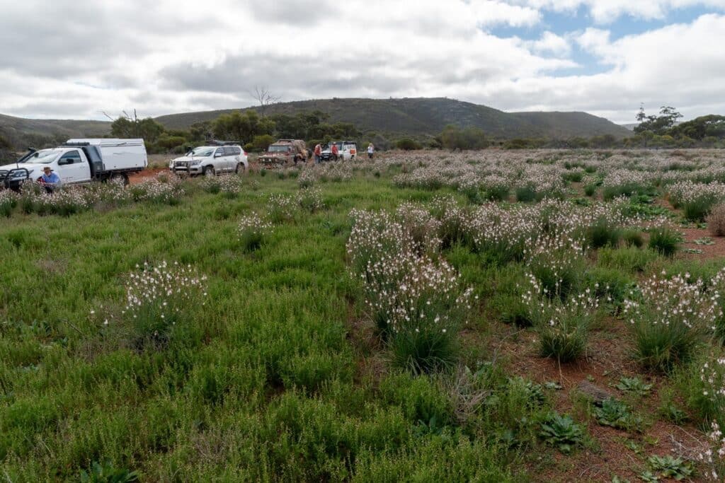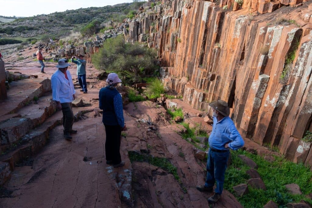 Next day the group ascended Scrubby Peak. Some found the walk challenging but worth the effort. Returning to camp around 11.00am we headed south through fields of orchids on Yardea Road and then turned east on the Old Paney Scenic Route for lunch at Old Paney homestead. A display in the homestead and historic walk outlines the history, exploration and life challenges associated to the 1860s pastoral leases. Further along the track the group walked to Policemans’ Dam. The police had a network of stone huts allowing them to patrol the ranges to support the pastoralists. Overstocking, drought, depression and high transportation costs saw the pastoralists leave the land in the early 20th century.