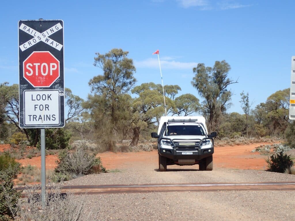 It was a mid-morning departure from Mt Finke, stopping a short time later at some salt pans. Care needs to be taken here as driving on the salt pan could lead to a sunken vehicle. We still had 40km of sandhills to navigate before the end of the track. The track became more interesting with a mix of sand, dunes, rocks and rock platforms. Crossing the East West Trans-Australian railway signified the end of the Goog’s Track.