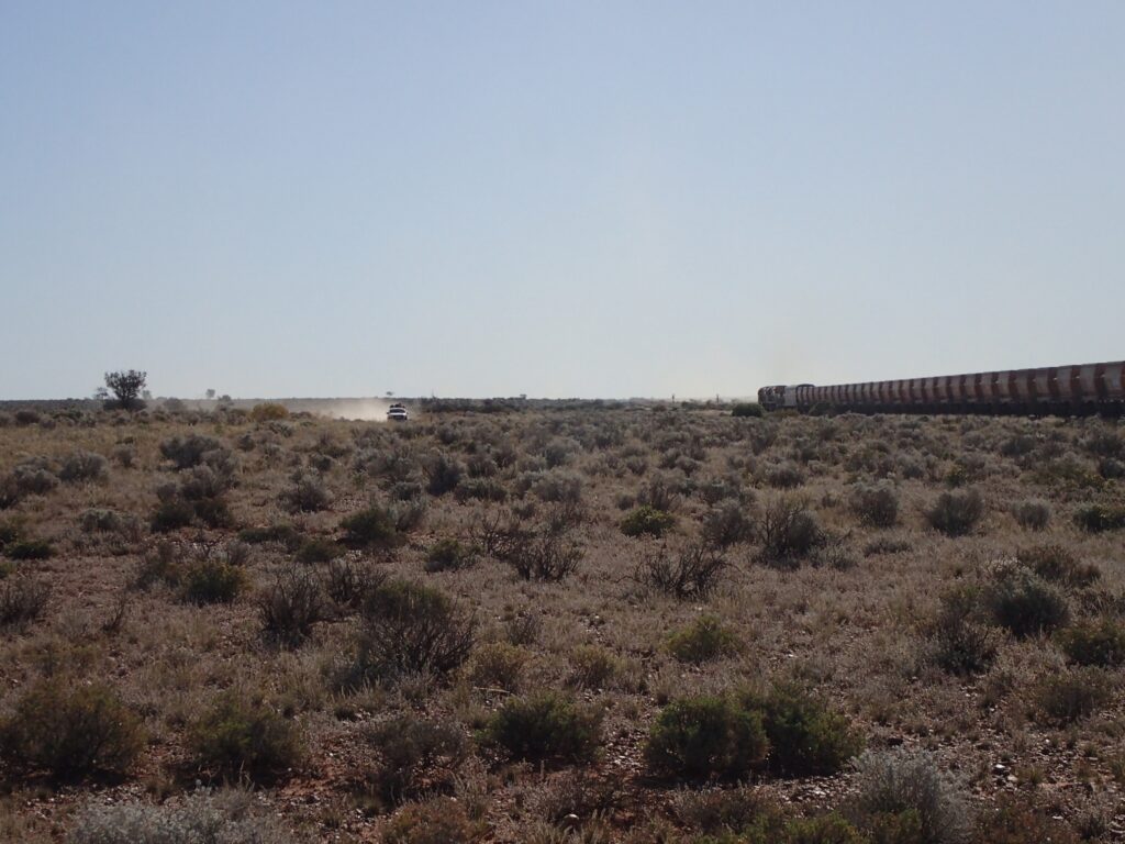Turning east we hit the gravel super-highway and followed the dog fence and railway line to Tarcoola. The Tarcoola of Goog’s time was a busy gold mining town but today it has no permanent residents. The nearby gold mine is still operating. We stopped at the original railway station, stretching our legs with a game of paddymelon soccer.