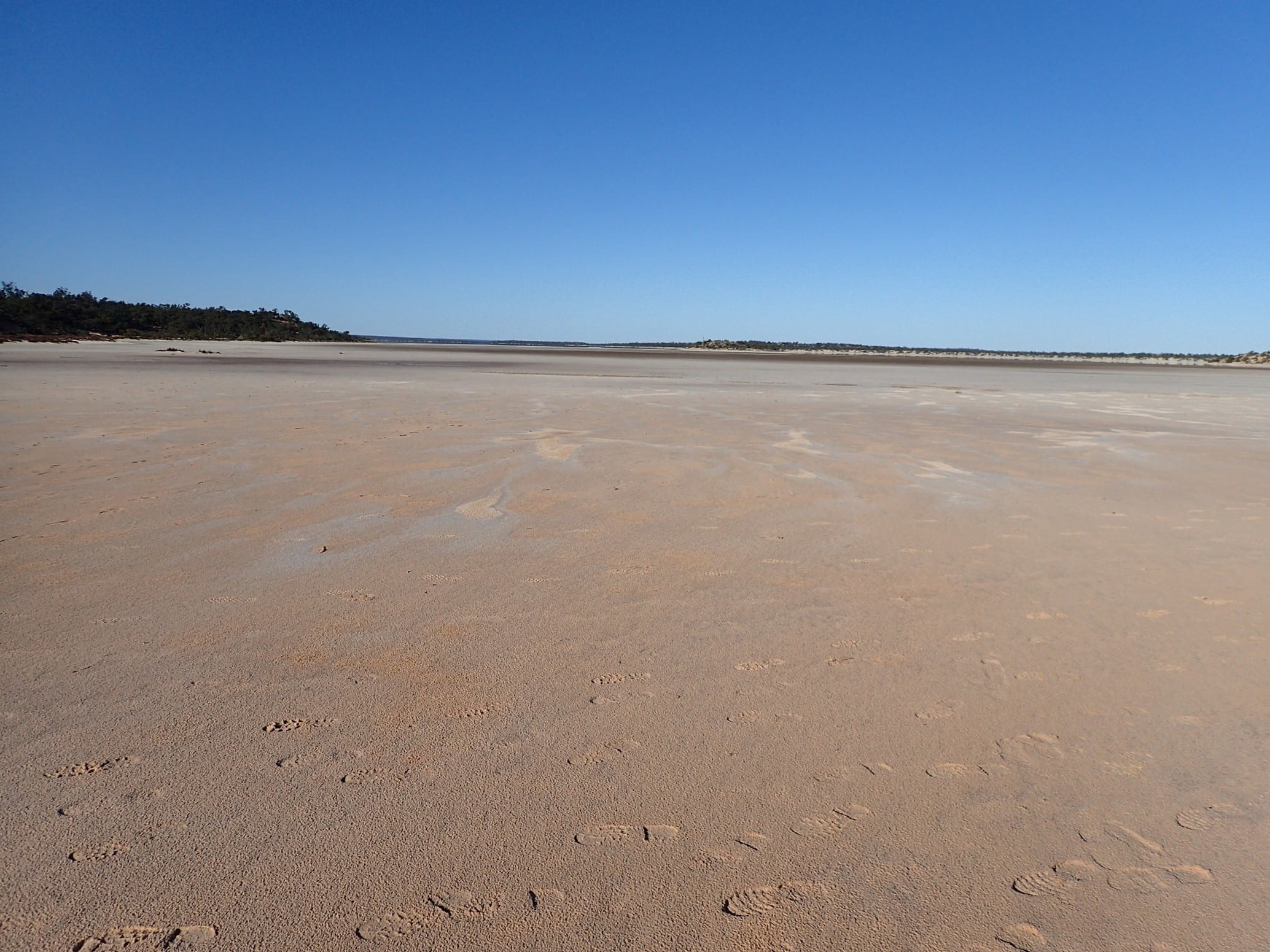 The further north we travelled the higher the sand dunes became, with the first large dune causing us all a few problems. Nevertheless it didn’t take us long to get the hang of dune driving. Passing Goog’s monuments we headed easterly off the track 4km to Goog’s Lake. This was our first campsite on the track. The group explored the lake surrounds, wildflowers, and walked the salt lake surface. The night was freezing after a warm day.