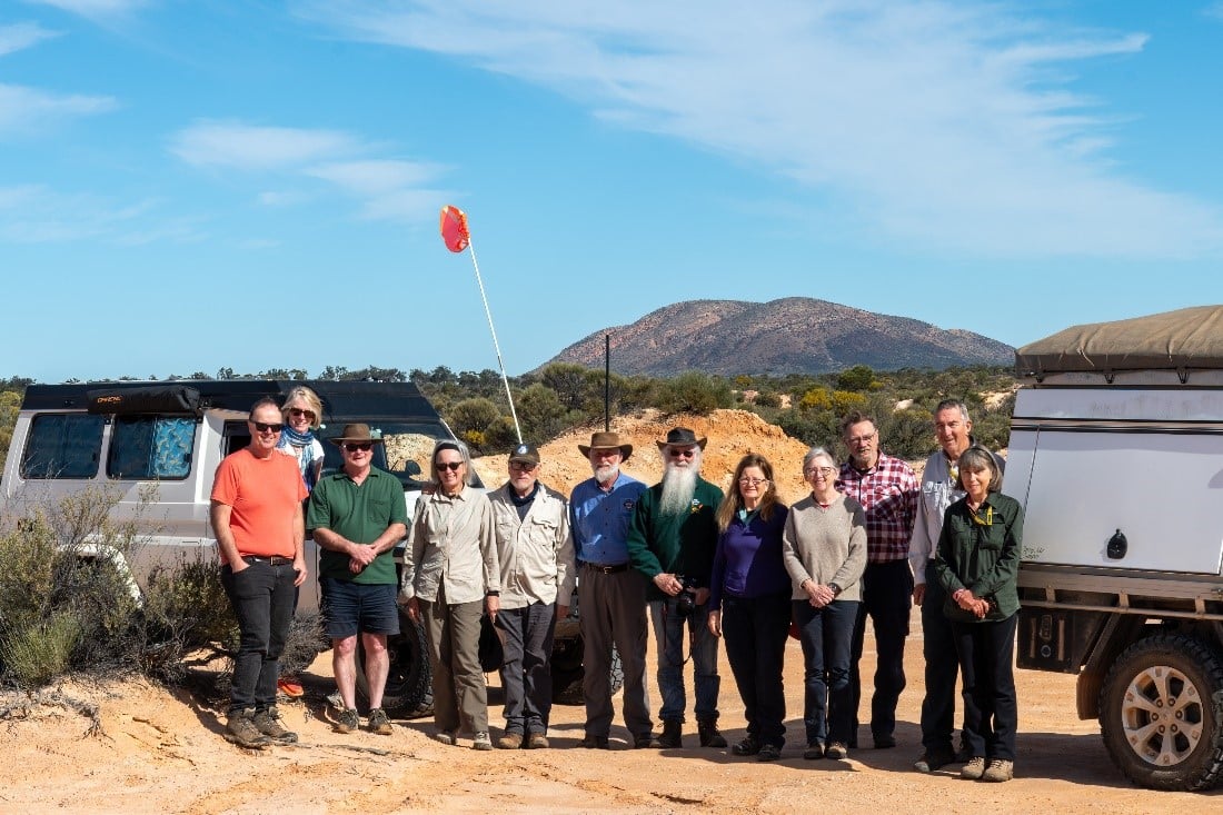 Next day the group ascended Scrubby Peak. Some found the walk challenging but worth the effort. Returning to camp around 11.00am we headed south through fields of orchids on Yardea Road and then turned east on the Old Paney Scenic Route for lunch at Old Paney homestead. A display in the homestead and historic walk outlines the history, exploration and life challenges associated to the 1860s pastoral leases. Further along the track the group walked to Policemans’ Dam. The police had a network of stone huts allowing them to patrol the ranges to support the pastoralists. Overstocking, drought, depression and high transportation costs saw the pastoralists leave the land in the early 20th century.