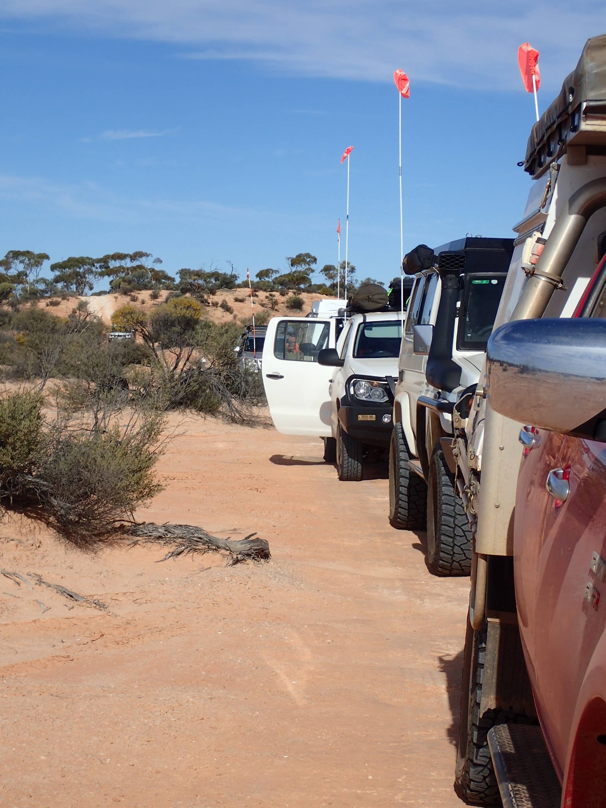 It was a mid-morning start with full fuel tanks and plenty of food on board we headed north from Ceduna, through the dog-proof fence and into Yumbarra Conservation Park. It was here that we aired down, erected our sand flags, and switched to UHF channel 18. The Goog’s track is a single track which makes its way over 363 sand dunes so it is important to keep communication open to communicate with vehicles travelling north to south.