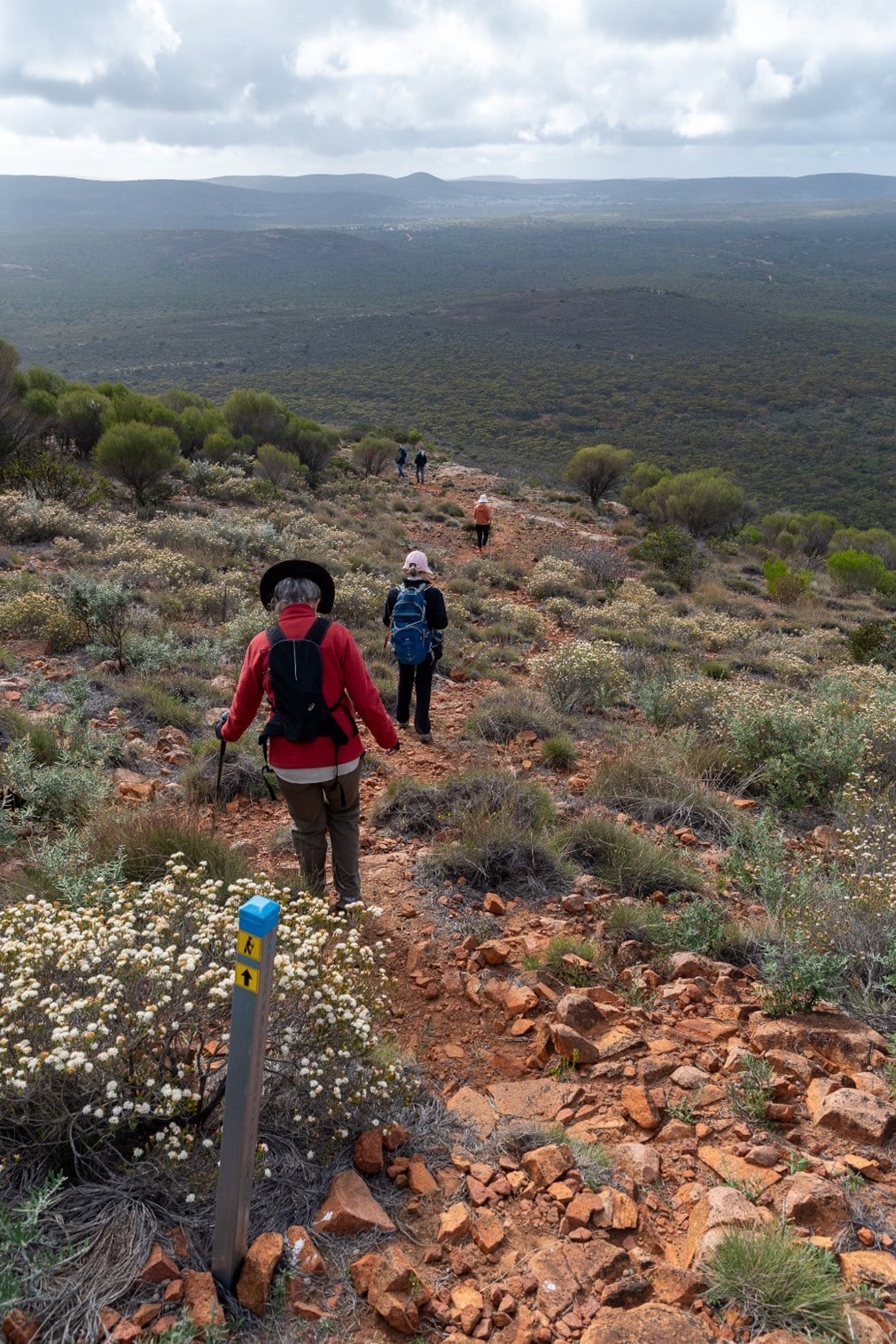 The walking track up Mt Finke was steep and covered with loose rocks but the views from the top were well worth the climb. Wildflowers dotted the landscape. The group came together with an evening campfire.
