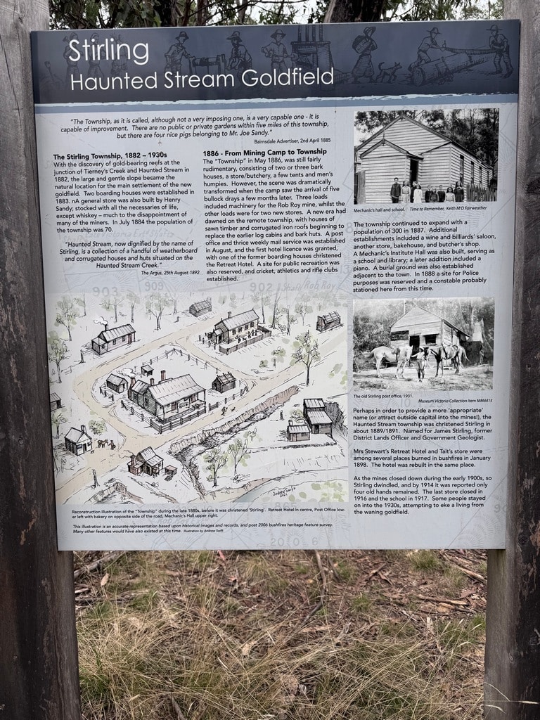 From the site of Dawson City, we descended down the valley crossing Haunted stream 54 times, negotiating some steep descents on red clay which was thankfully nice and dry before crossing the creek for the last time at the site of Stirling. The short trip was completed out to the Great Alpine Road and we made it back to Omeo in time for dinner at the pub. The booking site for the campground was somewhat shambolic with people arguing with an AI booking agent and no staff at the park but we all got sorted in the end.
