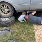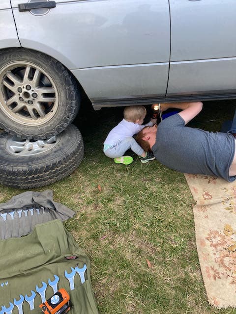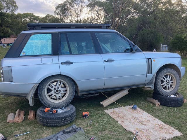 After the activities we all met back in the carpark at 1:30 and headed back to camp to check on the progress being made on the Range Rover.