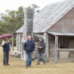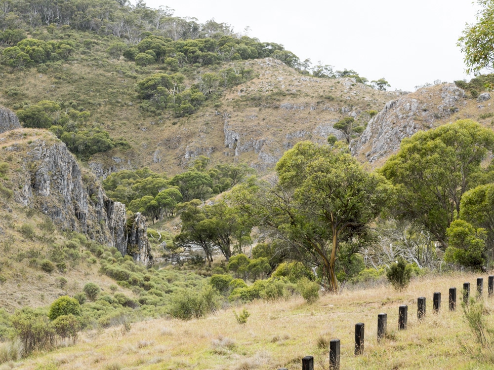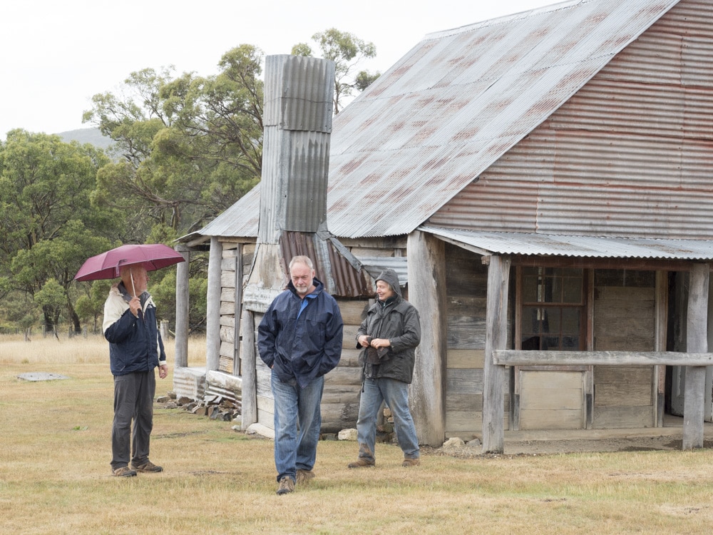 Having held out as long as we could, we stopped for morning tea in the rain in a forest clearing on Broken Cart Track. After morning tea we continued our journey on to Long Plain Road. The impromptu stop in the forest, while pleasant, was made up for with a very picturesque lunch stop, at Blue Waterholes Campground off Long Plain Road. While enjoying a relatively rain-free lunch we also enjoyed looking at the photos, and even some video coverage, of our adventures in the slippery section of Bramina Road. After packing our lunch makings away, we continued back towards Long Plain Road, stopping off along the way for a photo and history session at Coolamine Homestead.