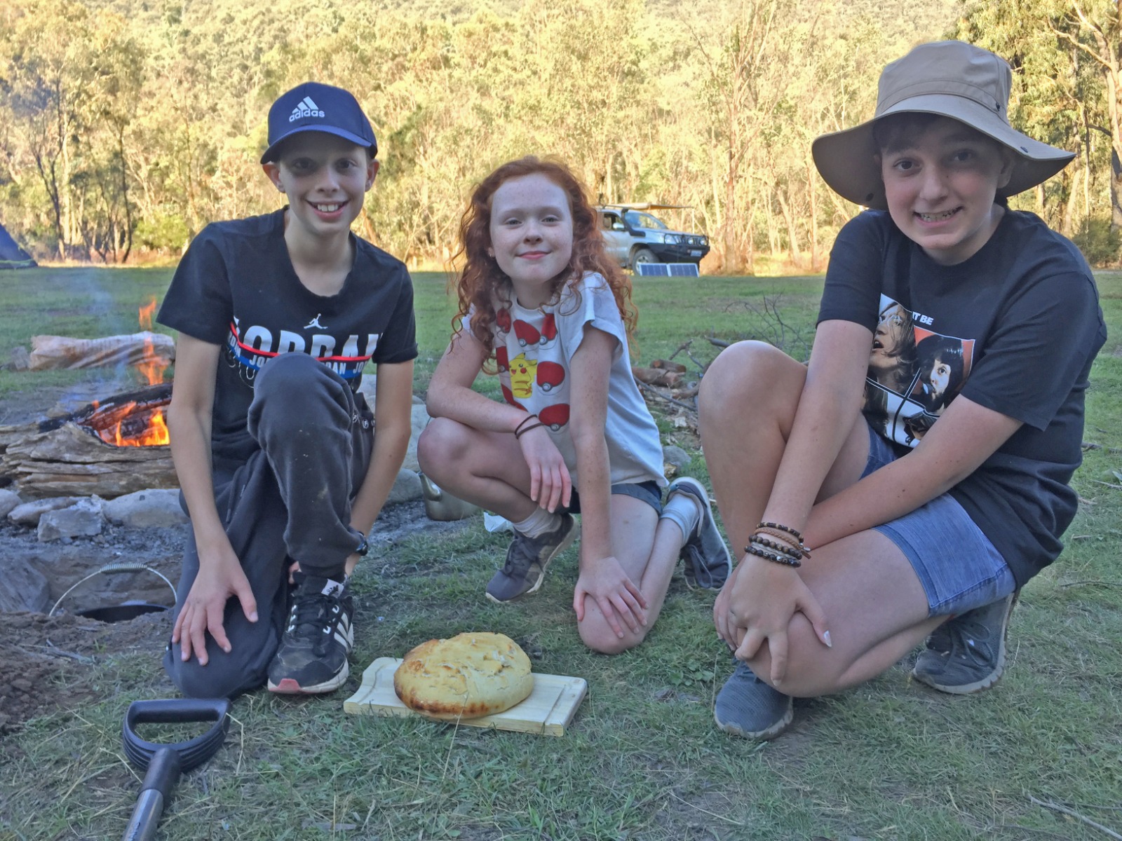 Michael and Juan set about building a fire to get plenty of coals ready for their impending cookup. I swear there was a large portion of beginners luck, as the damper came out near on perfect! And the follow up beef stew was delicious. The boys were treated to the full camping experience which was awesome.