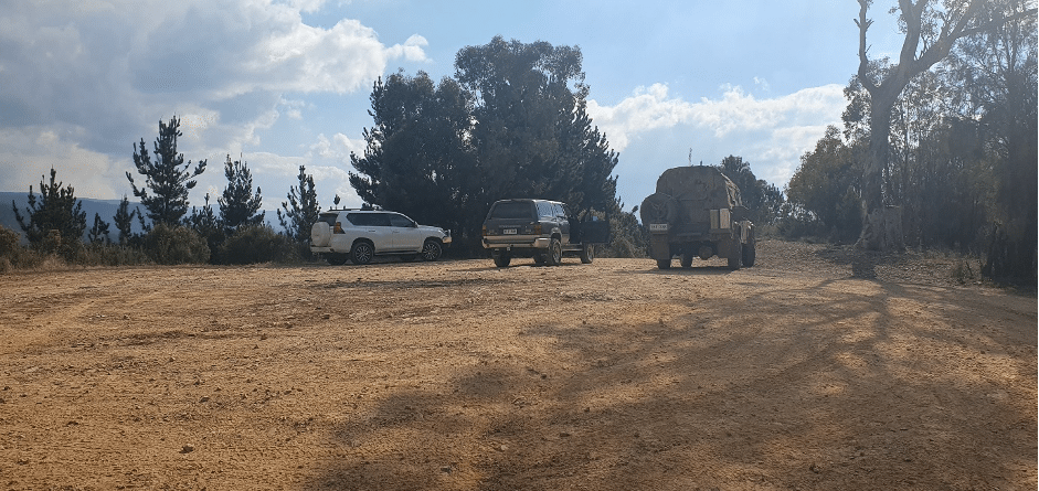 There were two ways to travel up to the top of Black Hill for lunch.  Two vehicles went straight up the short, but steep and softish route whilst the other two took the longer, less steep route.  Margaret decided to show Quentin that you can get up there in two leg drive, although she stopped half way up on the pretence of taking photos (you don’t see any from there in this report…), but I sense it was really to give her transmission time to cool!