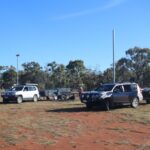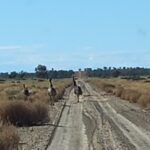 We delayed morning pack up as long as practical to allow some drying of canvas due to heavy dew. We departed around 10am, heading via Nyngan, Bourke toward Louth. We had a morning tea stop at Tottenham (centre of NSW) (interested to see an Action bus parked in a side street?), cake and coffees yum.