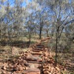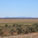 A beautiful crisp morning was spent adjusting camper trailer set-ups and taking the odd photo or two. Ann had booked us in for morning tea at 10:30am at $10 per head. We enjoyed fresh scones, jam and cream along with a selection of slices. Hot tea was served with these. At 12.30 we headed out to Gundabooka N.P. and State Conservation Area. Chris went with Eric as Paulette rested her healing foot. Some sections of the spoon drains were still full next to pavement on Louth Rd. We visited Yanda campground about 25km towards Bourke and 3 km in off the Louth road, on the Darling River. It has some basic facilities and includes a free BBQ. A heavy coating of black soil covered the grass towards the rivers edge making walking progress impossible. We then headed a small distance further north towards Bourke and took the Yanda track to the east. We parked at the Dry Tank camping area and started out on the Little Mtn walk (4.8km return) the walk was an easy stroll through the mulga and then a moderate slope up to Little Mtn. Beautifully constructed stone steps defined the steeper section. At the top, a lookout offered scenic views to Mt Gundabooka, about 5 km to the SW at 495m elevation. The trek to the top reserved for another trip. The walk took about 1.5hrs return. We drove back to Louth Rd via Ben Lomond Rd and Gundabooka Mulgaroon Rd, arriving at Rose Isle on dusk. T’was beverage o’clock again followed by meals at the camp kitchen’s fire place. A couple of field mice added to the entertainment later in the evening.