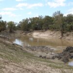 So with Ann and me now remaining we headed into Bourke for a few supplies, lunch at the bakery and a visit to the Back O’ Bourke visitor info centre filled our time. It was interesting to see the graders had been out in recent days to undo some damage to local roads. The weather back at camp progressively worsened with winds gusting to gale force at times combined with horizontal rain becoming a good test for the camper. With extra canvas and a doubling of guy ropes added, we headed for the camp kitchen and the fire. Catching up on our reading and relaxing, we prepared meals here and caught up with other travellers, some marooned after some temp road closures south.