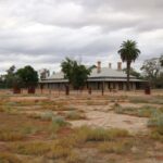 After another dewy morning we all left at 10am, forgoing morning tea, travelling via Louth and crossing the Darling river we then headed north on Toorale Road to Toorale N.P. and State Conservation Area. We first visited Mt Talowla lookout, 114m in height, where the boys walked up to the top. It has a very flat plateau summit, having a rocky moonscape appearance with vast views across the flood plains. Next we proceeded north to the Warrego Floodplain Drive, approx. 34km return trip in from Toorale Rd. Here we discovered signs of an old livestock property. We continued north to the Darling River Drive where we visited the Many Big Rocks picnic area. The nearby Darling River campground was closed after the flooding. We then decided to head back to Louth due to threatening skies in case rain fell on the black soiled Toorale road. We later found rain had missed the Louth area, however Cobar received a drenching (a lucky miss). We called into Toorale homestead for a quick look (NPWS guided tours during school hols only). We voted to stop at Shindys Inn for a snack and drink before returning to camp. We had travelled about 240km today, but were not more than 15km from camp at our destination! Later while back at the camp kitchen we were hit by a brief storm as a cold front moved through with gusty winds. There was not much rain and the calm returned soon after for a peaceful nights sleep.