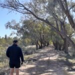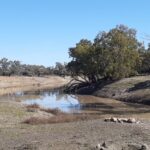 Chris glamped in Dubbo then visited Bourke weir on the way to Rose Isle en route from Newcastle area, meeting the owner, Samantha just after 3pm. There were still some wet spots around from recent rainfalls last week and some black soil mud was a hazard to be avoided. The Darling River seems to be slowly flowing. There is almost always water in the river here due to a weir about half way down-river towards Louth and the river gradient very, very flat. The others arrived after 5pm from Trundle and quickly set up camp, the fire was lit in camp kitchen fireplace and nibbles followed around 6pm. Some of the other guests are helping the owners Samantha and Garry Mooring to maintain the campground and facilities while staying for extended periods.