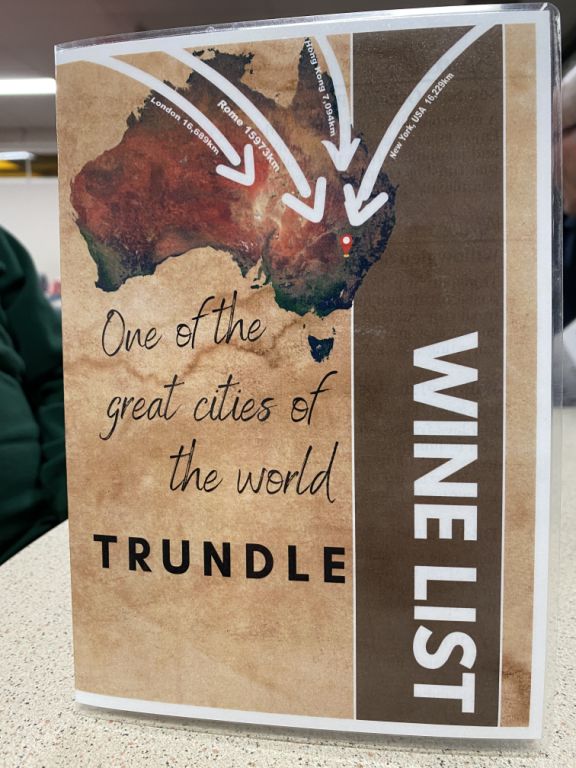 We opted for a dine-in experience at the historic Trundle Hotel (under new management) in the main street. The hotel boasts the longest wooden veranda in NSW (87.6m) and it is situated on the widest main street in NSW (wide enough to turn a bullock train) refer:- www.trundlehotel.com.au