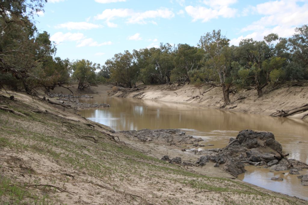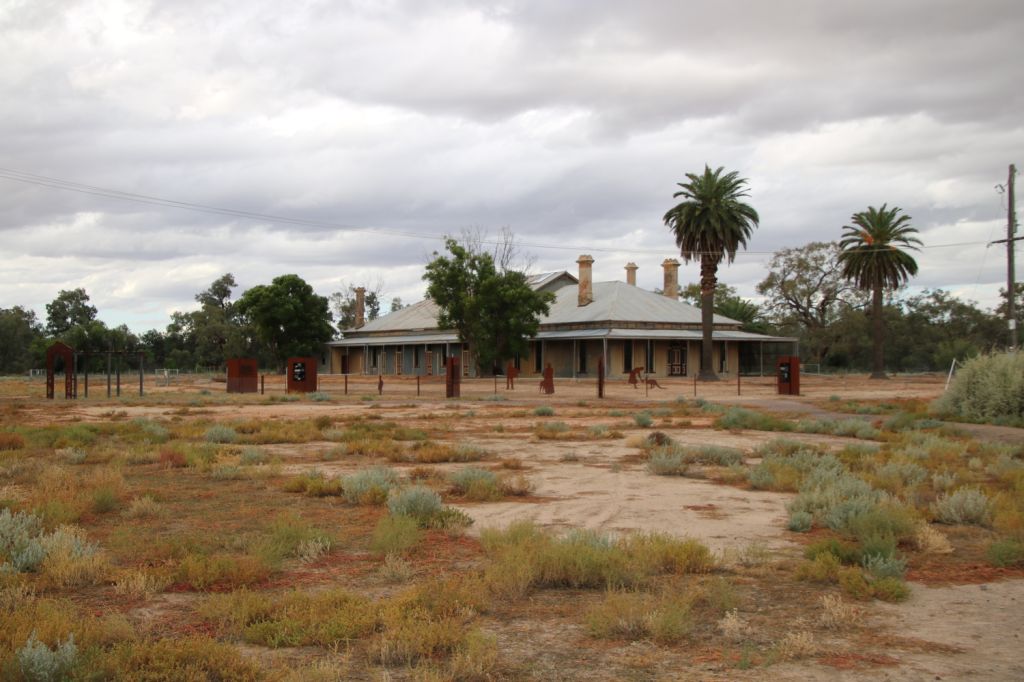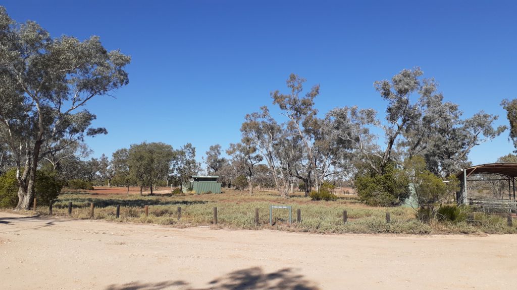 After another dewy morning we all left at 10am, forgoing morning tea, travelling via Louth and crossing the Darling river we then headed north on Toorale Road to Toorale N.P. and State Conservation Area. We first visited Mt Talowla lookout, 114m in height, where the boys walked up to the top. It has a very flat plateau summit, having a rocky moonscape appearance with vast views across the flood plains. Next we proceeded north to the Warrego Floodplain Drive, approx. 34km return trip in from Toorale Rd. Here we discovered signs of an old livestock property. We continued north to the Darling River Drive where we visited the Many Big Rocks picnic area. The nearby Darling River campground was closed after the flooding. We then decided to head back to Louth due to threatening skies in case rain fell on the black soiled Toorale road. We later found rain had missed the Louth area, however Cobar received a drenching (a lucky miss). We called into Toorale homestead for a quick look (NPWS guided tours during school hols only). We voted to stop at Shindys Inn for a snack and drink before returning to camp. We had travelled about 240km today, but were not more than 15km from camp at our destination! Later while back at the camp kitchen we were hit by a brief storm as a cold front moved through with gusty winds. There was not much rain and the calm returned soon after for a peaceful nights sleep.