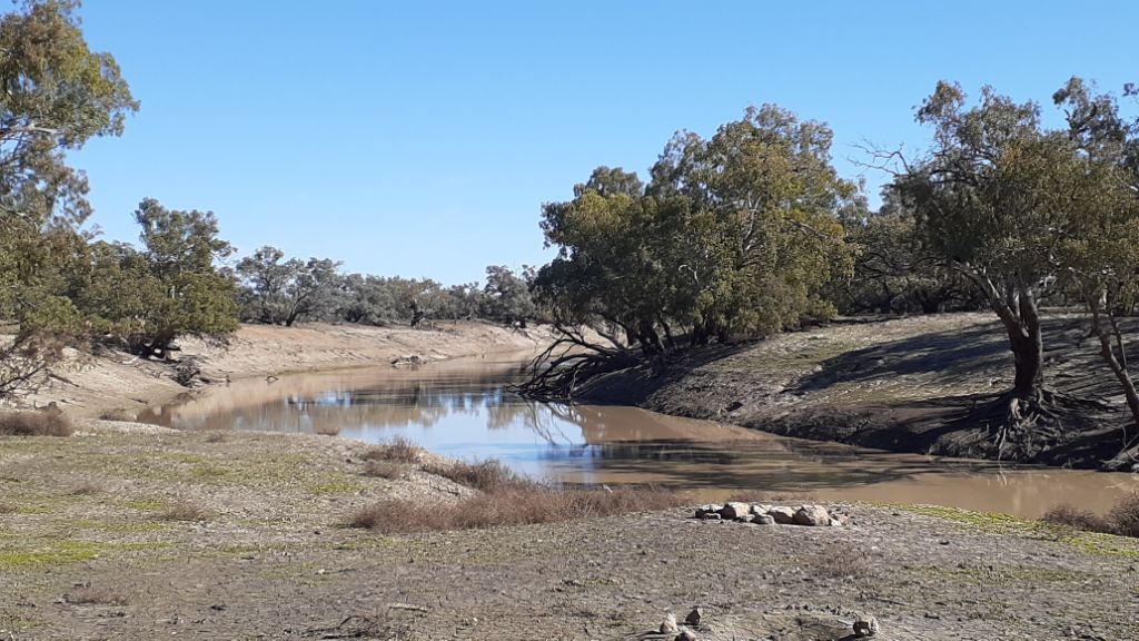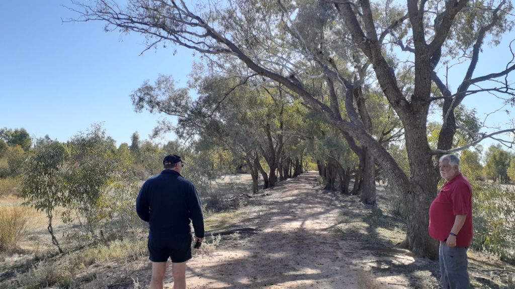 Chris glamped in Dubbo then visited Bourke weir on the way to Rose Isle en route from Newcastle area, meeting the owner, Samantha just after 3pm. There were still some wet spots around from recent rainfalls last week and some black soil mud was a hazard to be avoided. The Darling River seems to be slowly flowing. There is almost always water in the river here due to a weir about half way down-river towards Louth and the river gradient very, very flat. The others arrived after 5pm from Trundle and quickly set up camp, the fire was lit in camp kitchen fireplace and nibbles followed around 6pm. Some of the other guests are helping the owners Samantha and Garry Mooring to maintain the campground and facilities while staying for extended periods.