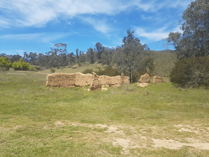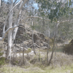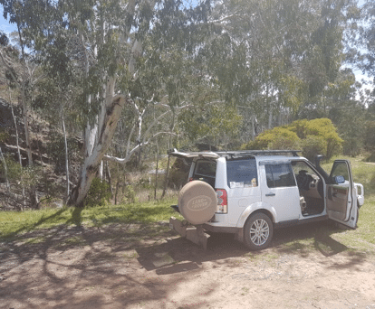 Our ultimate destination for the day’s drive was Lobs Hole so we left Cabramurra around quarter to (12) back down the Link Road to the Lobs Hole Ravine Road. Back on the dirt but quickly detained by traffic control person who stated the road had to be managed as they were undertaking feasibility study exercises in the area. Our vehicle rego details were taken and we were the allowed to proceed with Stu having to advise our position at regular intervals (checkpoints). The drive down to Lobs Hole was quite easy and the trip from Cabramurra took about an hour. It is about 20 Kms from Link Road to Lobs Hole and this appears to be a nice spot for a bush camp on the Yarrangobilly River if you do not need any facilities. There are the remains of the old mud brick pub.