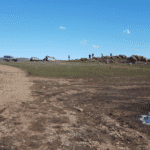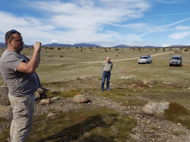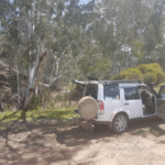 Leaving Adaminaby around 1pm, we headed to Denison campground on the Denison Campground Road which is about twenty Kms up the road (Snowy Mountain Highway), just past Providence Portal and looks over the north western end of Lake Eucumbene. If there had been any water in Eucumbene, we could have had water views. This is a large grassed (and free) camp area with a single “long drop” providing a framed view of what might be a lake (if you leave the door open). Half the camp is on sloping ground but adjacent to the trees while the other is flat and open. There were already a couple of D4s with Ultimates so we decided to make them feel like part of the club by camping near them. None of the campers already there were Oscar’s crew and Stu still could not raise them on the radio.