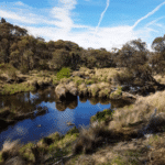 As it was a clear night it was also a cool night, but we woke to a glorious sunny and dry morning. After breaky, we departed camp around half past (9) and headed via Kiandra, the Link Road and Kings Cross Road before turning into Mt Selwyn ski area for a look/see. Kings Cross Road was closed beyond Selwyn so we returned to the Link Road and along the way we pulled in at 3 Mile Dam for a look/see. The dam was created to service the gold mining at Kiandra. This is a nice spot and still worth considering for a weekend camping and fishing trip (notes from a previous trip report).