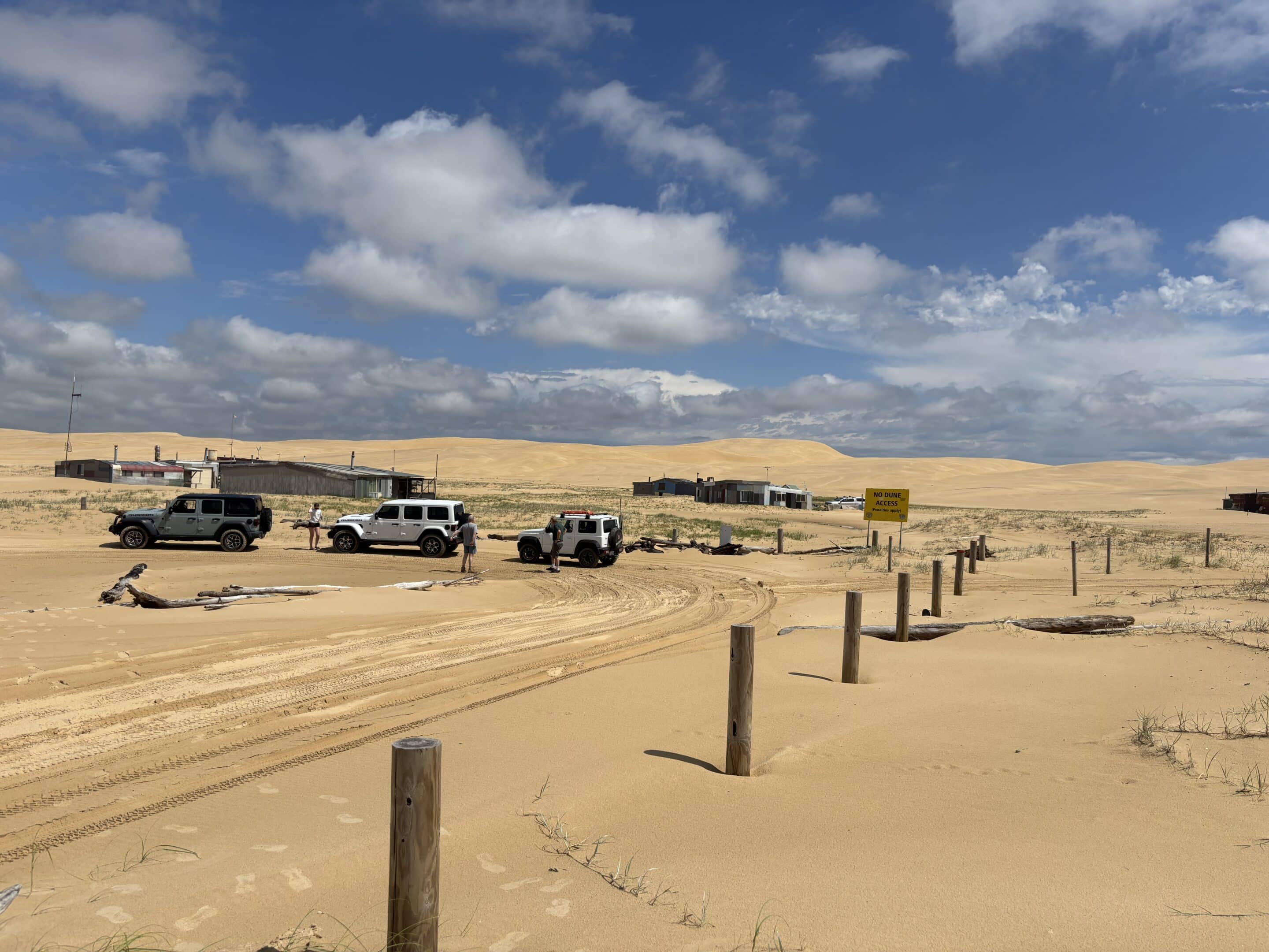 There had been some light rain overnight, so the sand was pretty firm. The first stop was Tin City a cluster of 11 shacks that started as a homeless camp in the 1920s and until the beach was handed back to the traditional owners the shacks were on a 100-year lease. They are now only able to be given away or handed down in a family. There were a few cars there when we stopped so they are clearly still being used.