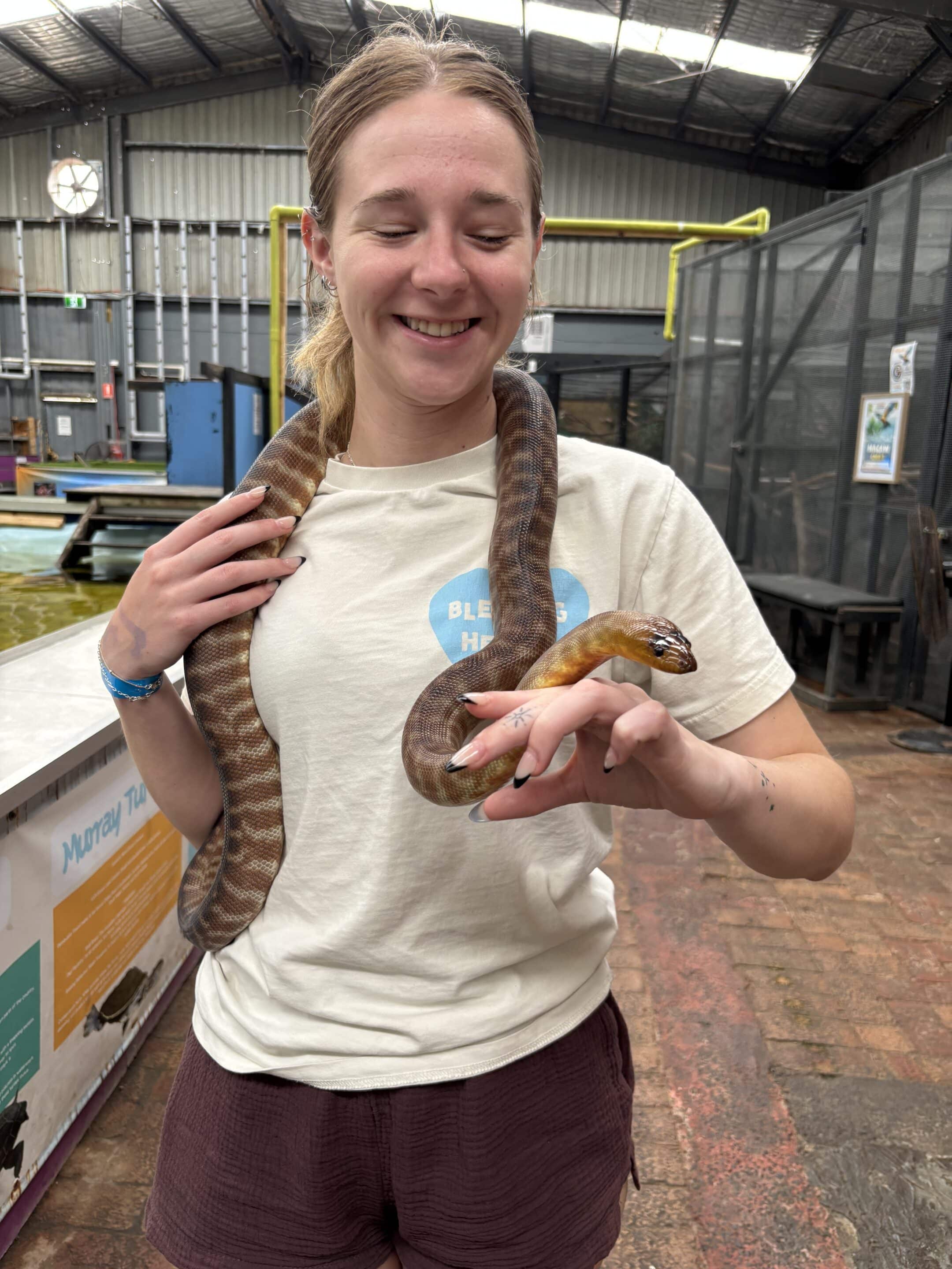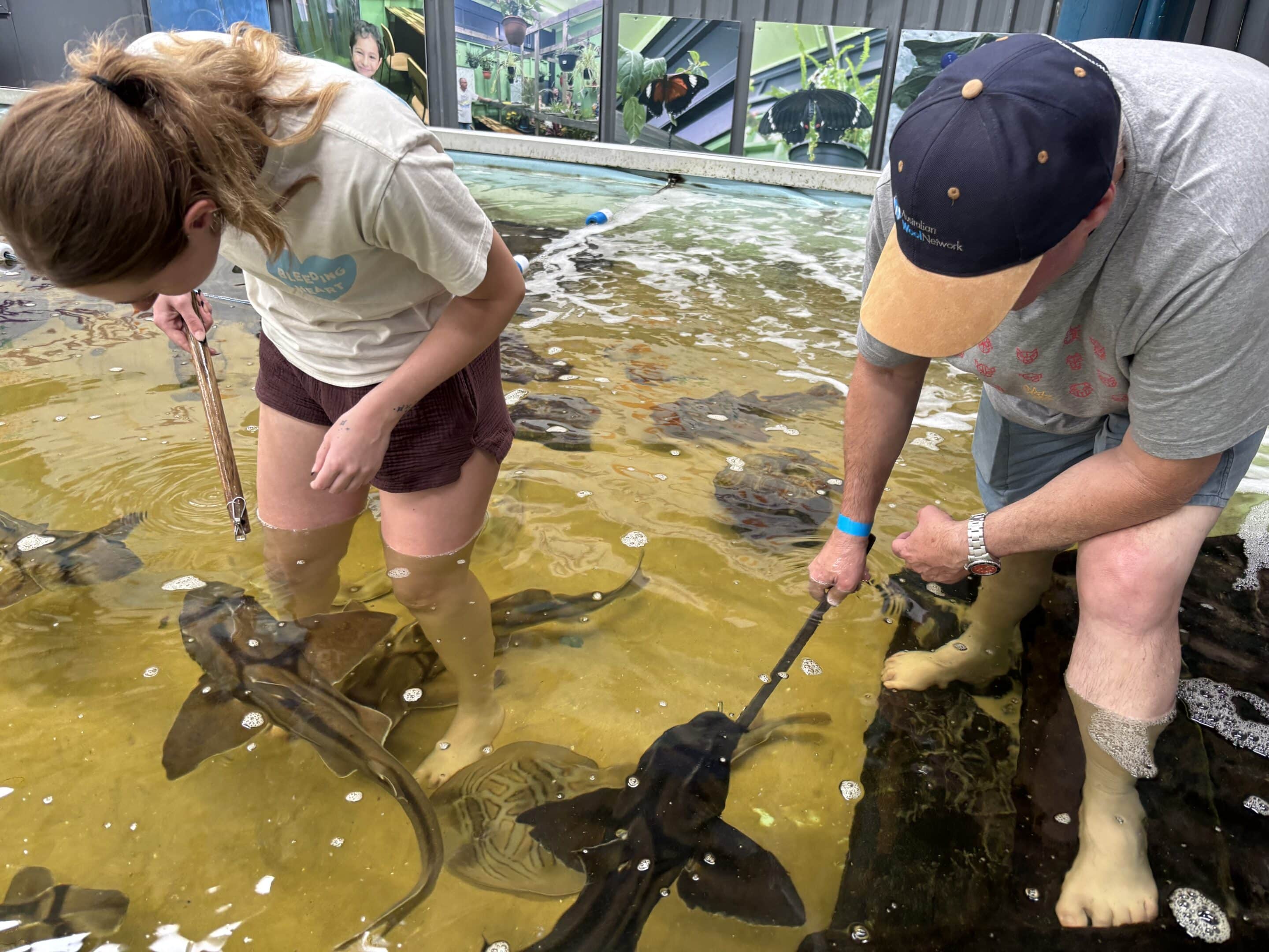 On the way out of the dunes we stopped to help a P plater in a Mazda BT50 who had lowered his tyre a little too far with a tyre deflater that had removed the valve core and let a bit too much air out. We headed back to cam and aired up with David electing to stay at cam and read whilst the Totens headed to the Shark and Ray Rescue Centre, where we got to feed and pat some gummy sharks and rays and play with a snake.